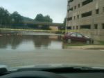 That is nothing compared to after the hurricance drenching last weekend. I think I heard someone say the river was due to crest around 1pm today. Thankfully it stopped raining right around 9am. There was some of the light stuff falling. I did hear it is supposed to rain later too. i know the creek at home is filled. I'll eventually go home and wait to see if Noah floats by. If he does, I'll try to catch a ride.